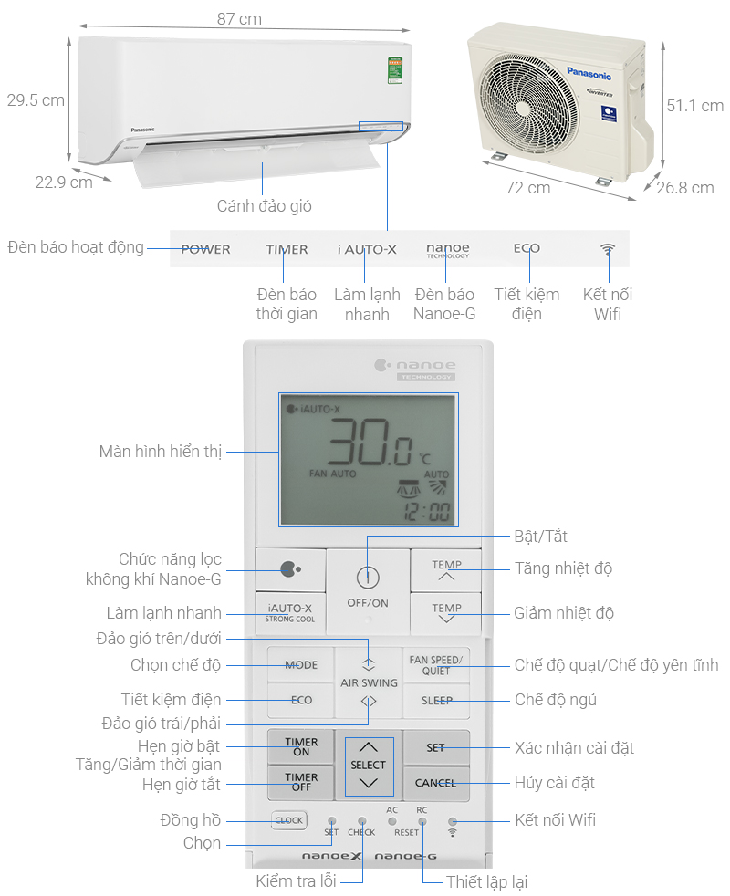 Lọc bụi, kháng khuẩn, khử mùi: Nanoe-G lọc bụi mịn PM 2.5Công nghệ lọc không khí Nanoe™ X thế hệ 3