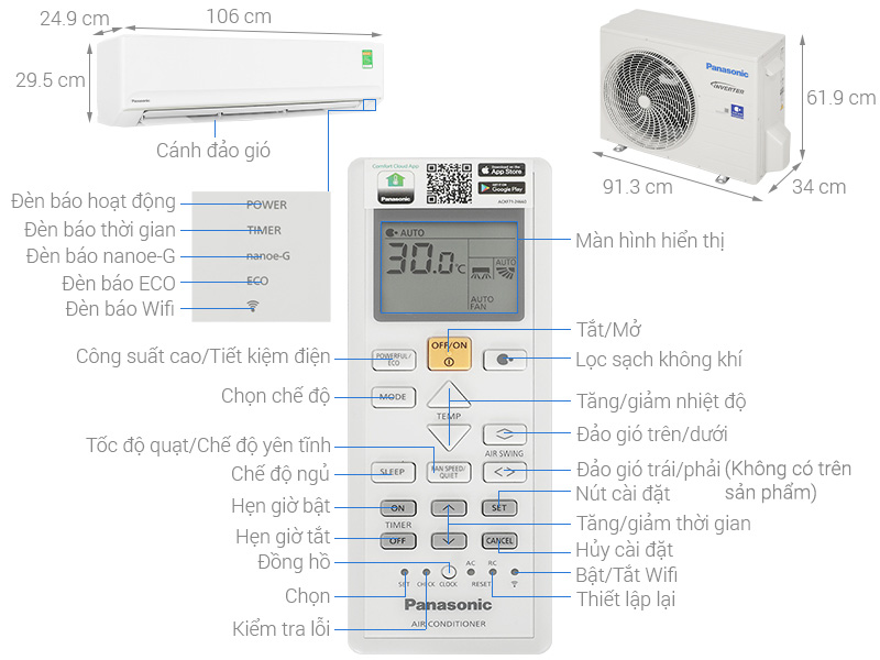 Máy lạnh Panasonic Inverter 1 HP CU/CS-PU9AKH-8