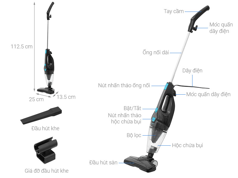 | Các loại đầu hút | Đầu hút khe, Đầu hút sàn |