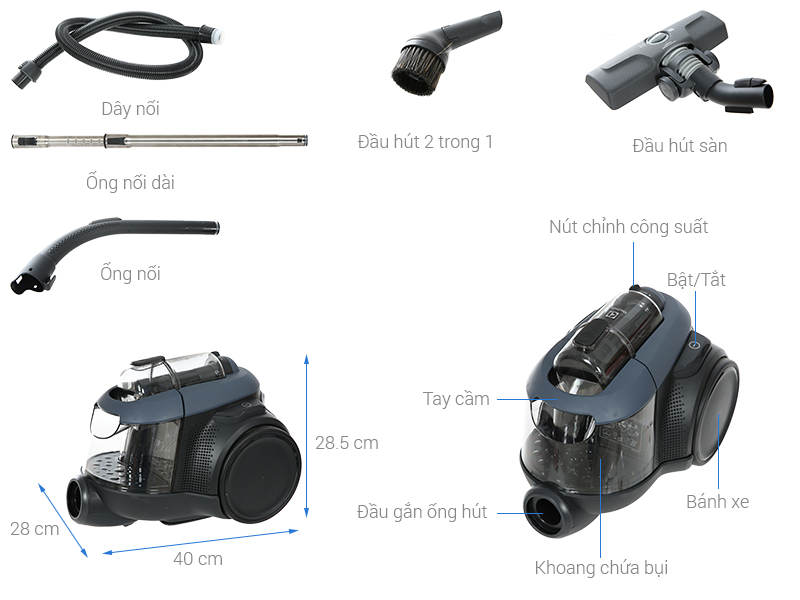 | Tiện ích | Điều chỉnh sức hút bụi, Dây điện tự thu gọn |