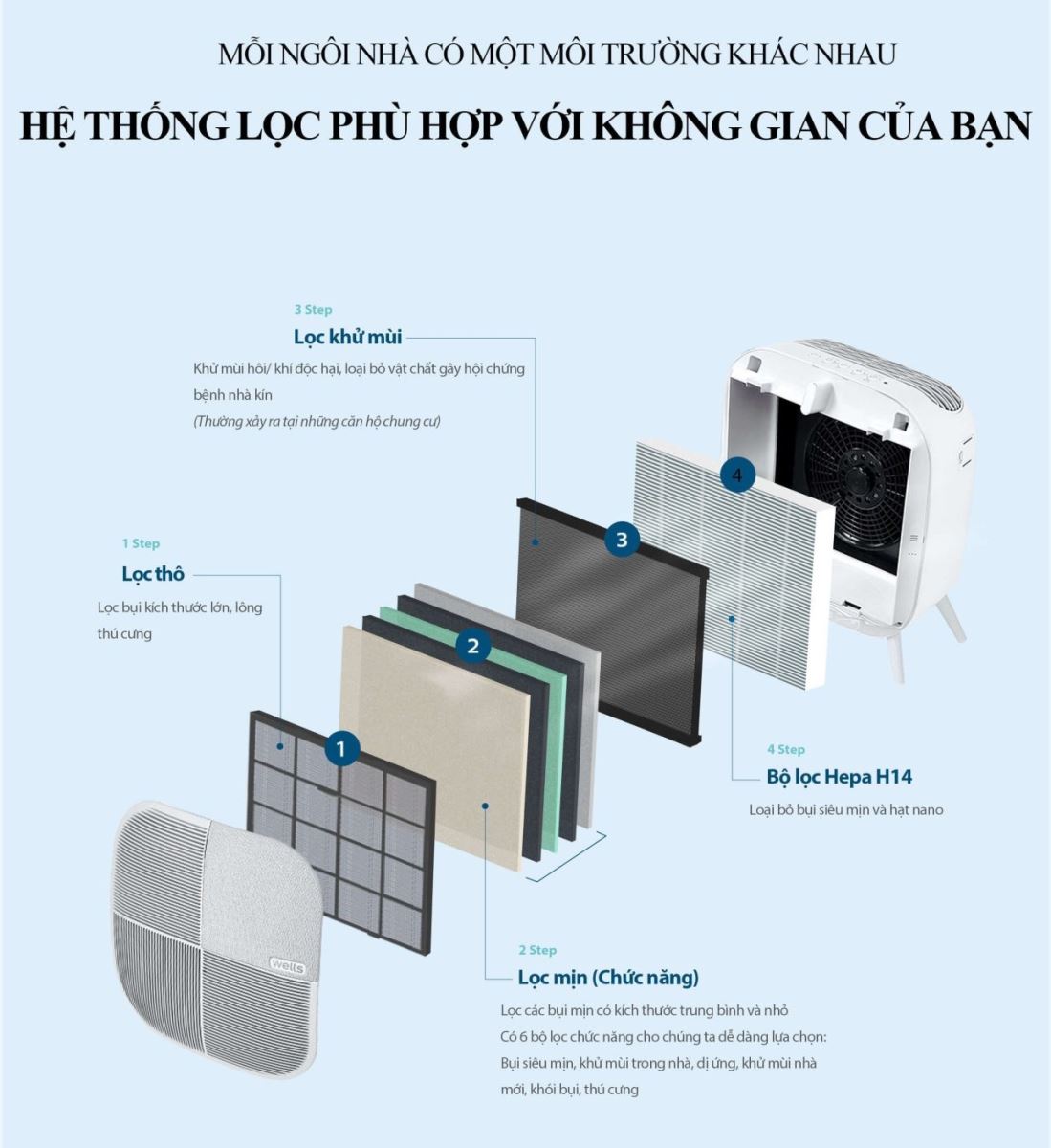 | Bộ lọc bụi | Màng lọc than hoạt tính, màng lọc bụi mịn, màng lọc thô, HEPA 14 |