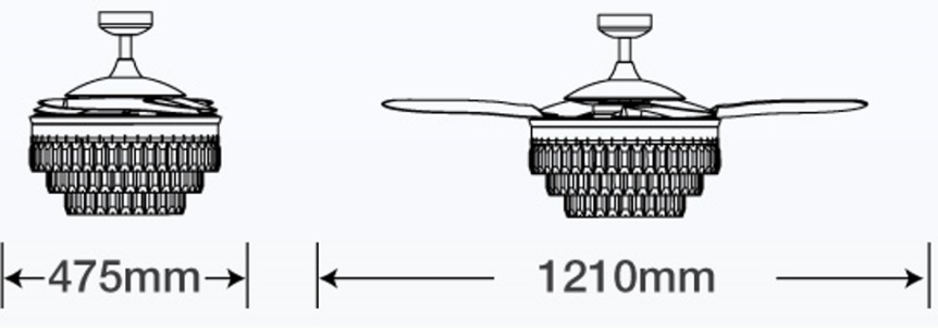 | Thẩm mỹ & hiệu ứng | Thiết kế trong suốt tăng hiệu quả chiếu sáng, thẩm mỹ cao – sải cánh 122cm tạo hình ảnh lưỡi liềm bay |