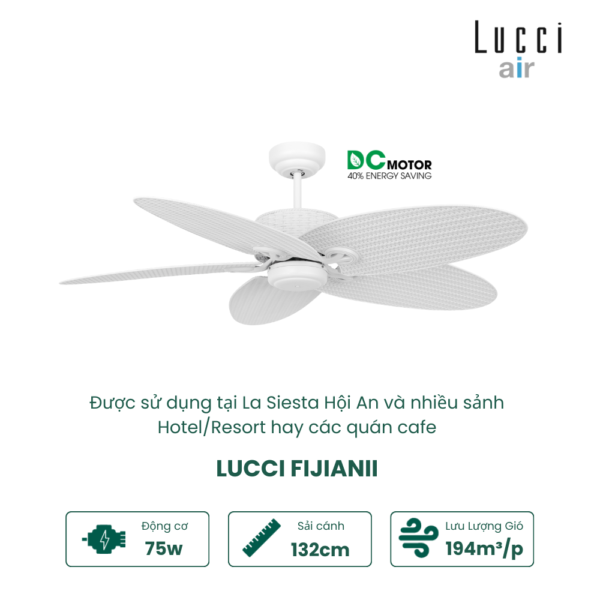 | Cánh quạt | 5 cánh nhựa Plastic, sải cánh 132 cm |