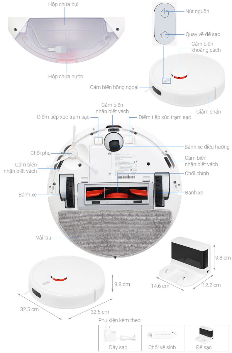 - Tự quay về đế/trạm sạc